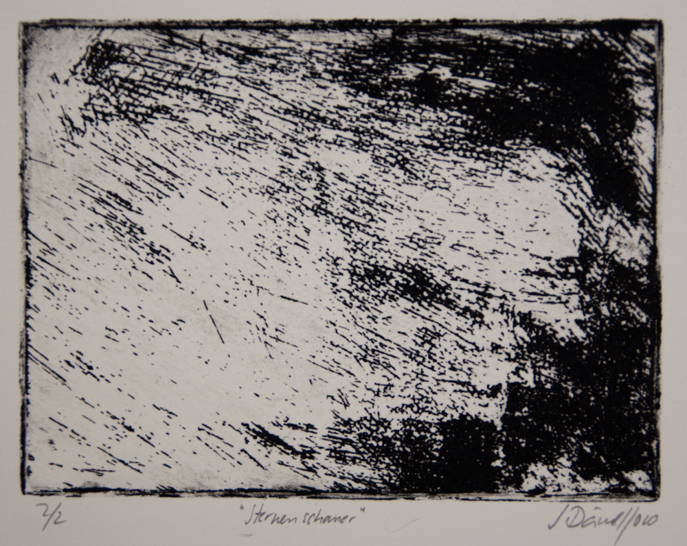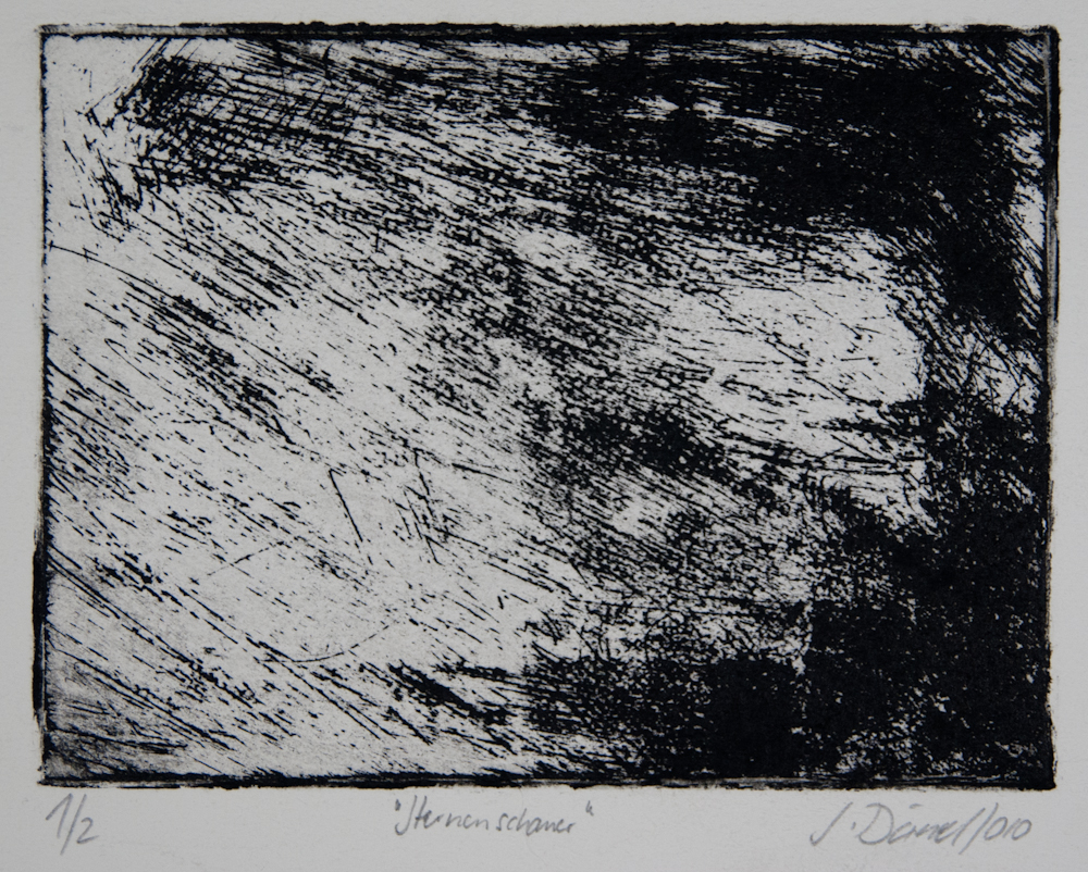 Die Bezeichnung der Grafik verrät es, Sterne sollen es sein. Aber ist der Betrachter an den Titel gebunden? Vielleicht ist das nur die sich ausbreitende Dunkelheit, die das Licht vernichtet. Oder auch die Dunkelheit, die das Nichts gierig verschlingt. Ist das Licht Alles? Ist das Schwarz nichts?